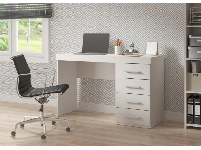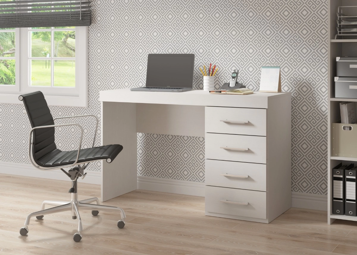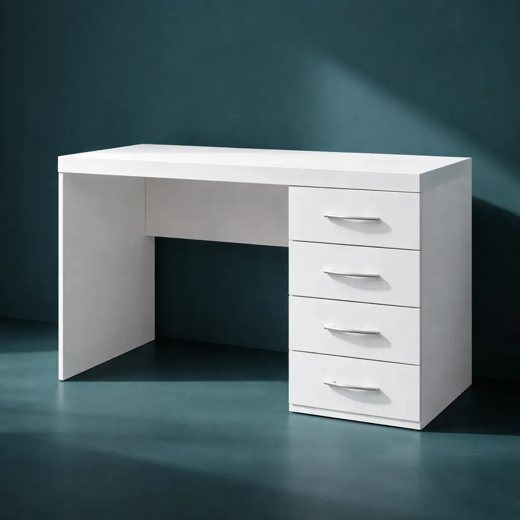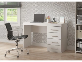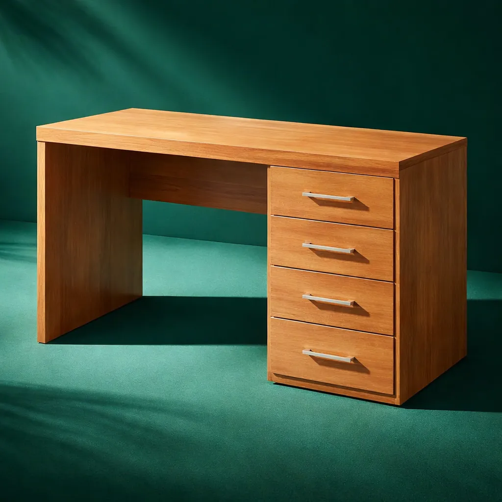 Funcional, moderno y pensado para el uso diario. Este escritorio combina una amplia superficie de trabajo con una práctica cajonera lateral de cuatro cajones, ideal para mantener todo organizado mientras estudiás o trabajás.