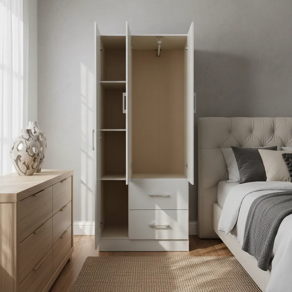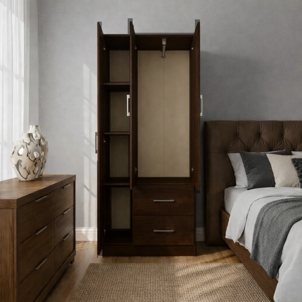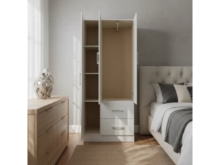 Ropero 2P, 2C y 2 estantes MelGris Linea Nordica en Madera Maciza