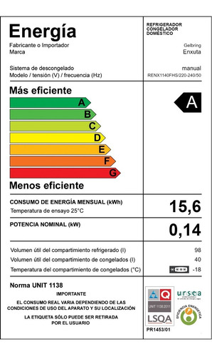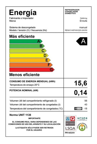 Capacidad de Refrigerador: 98 Lts